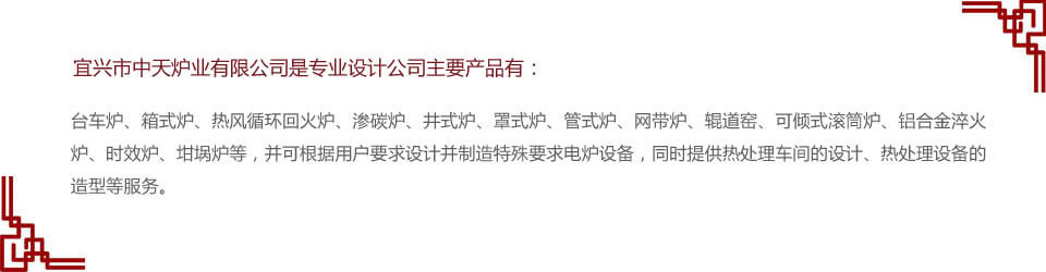 宜兴市中天炉业有限公司是专业设计、制造各种工业电炉、淬火水槽等热处理设备的公司。